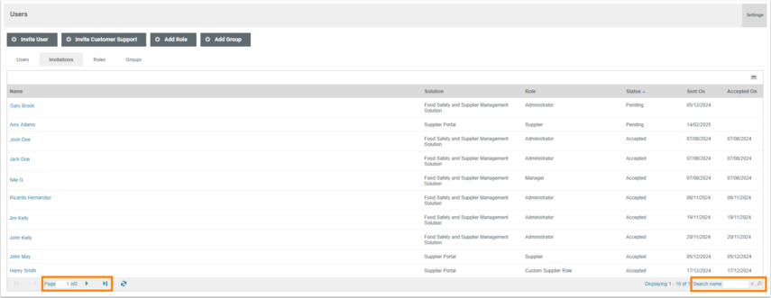 - The Invitations tab contains both internal user invitations and supplier portal user invitations.