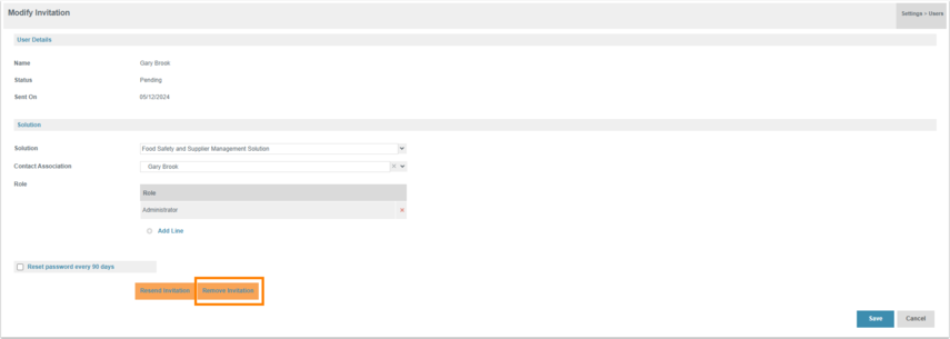 - Select Yes to remove the user invitation.