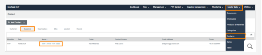 Adding a Supplier Contact