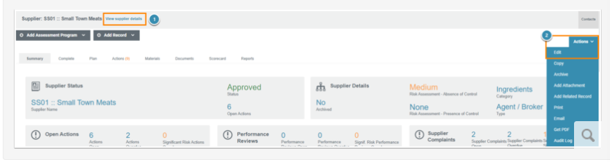 Within the Supplier overview page, there are two ways to access editing your Supplier: