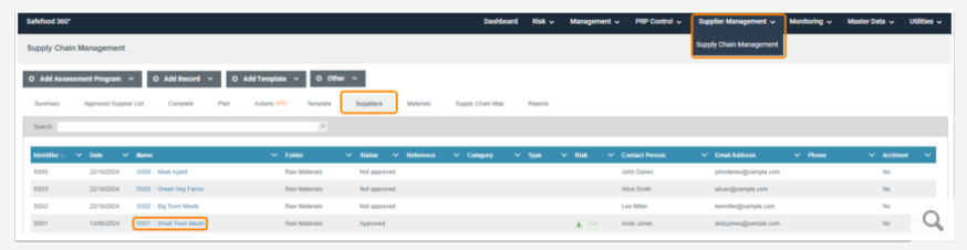 Within the Suppliers tab, click on the name of the Supplier you wish to edit. The Supplier name will be in blue text, which indicates a link.