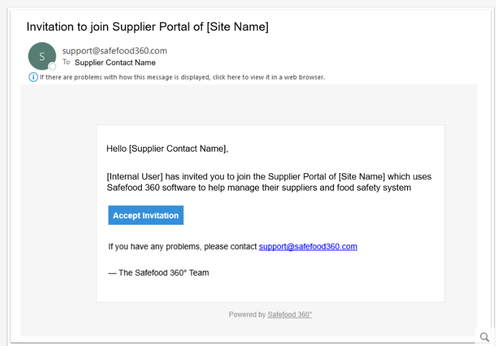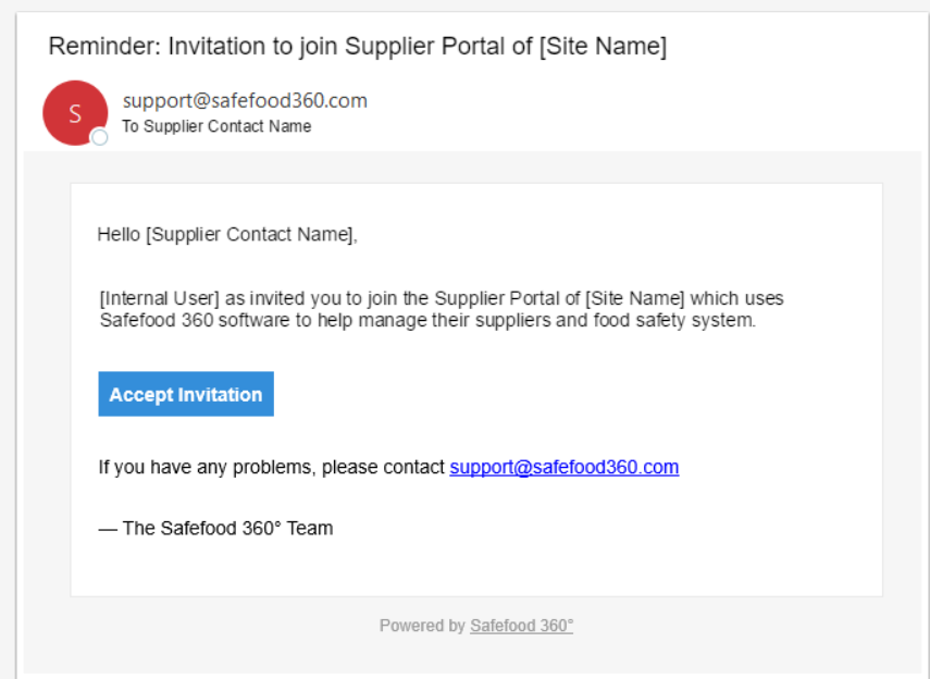 Note: The Supplier Portal User will receive a second Email Notification, four days later reminding them to accept their invitation if they have not yet accepted it.
