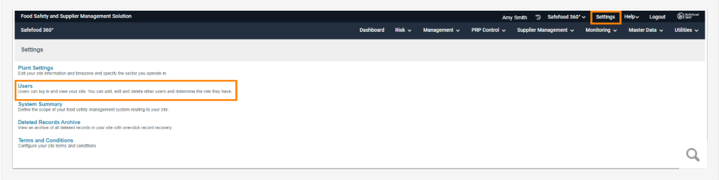 To invite a Supplier Portal User, you must navigate to the Users section: