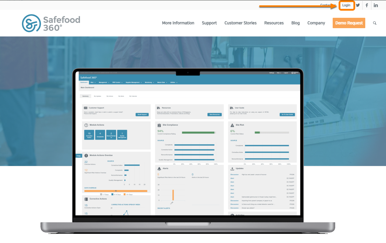 - Option 1: By clicking 'Login' at the top of the Ideagen Safe Food website.